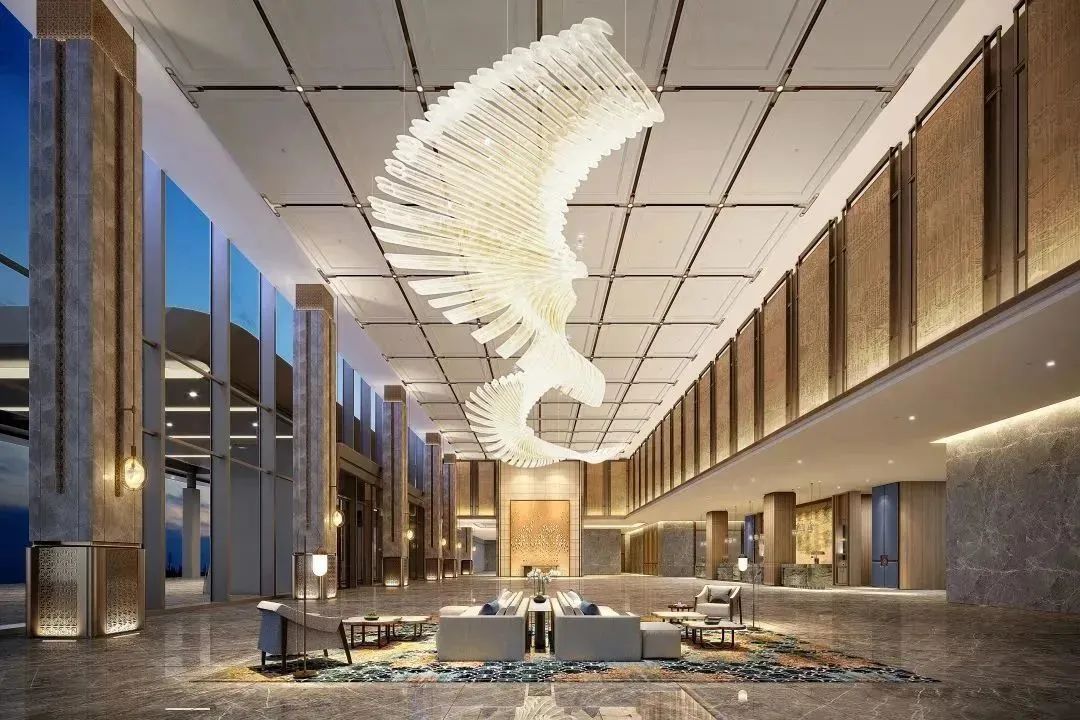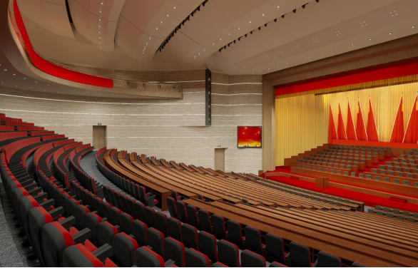 3000平米報告廳位于酒店1-3層,共計1800個席位,層高13.4米,使用最新聲學(xué)技術(shù)、讓賓客體驗到自然、真實、優(yōu)美的聽覺藝術(shù)享受。三層環(huán)繞疊加,錯落有致的空間格局,渲染出極具韻律的“磅礴大氣,渾然一體”之勢。